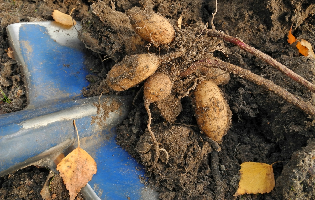 Hãy chờ cho đến khi lá cây chuyển sang màu nâu sau khi có sương giá, sau đó nhẹ nhàng đào lấy củ. Cắt bỏ lá và phủi càng nhiều đất càng tốt. Tránh rửa bằng nước vì hơi ẩm có thể làm thối chúng trong quá trình bảo quản. Cách tốt nhất là để khô ở nơi thoáng mát trong khoảng một tuần. Sau đó, đóng gói trong một hộp đựng thoáng khí, chẳng hạn như hộp các tông.